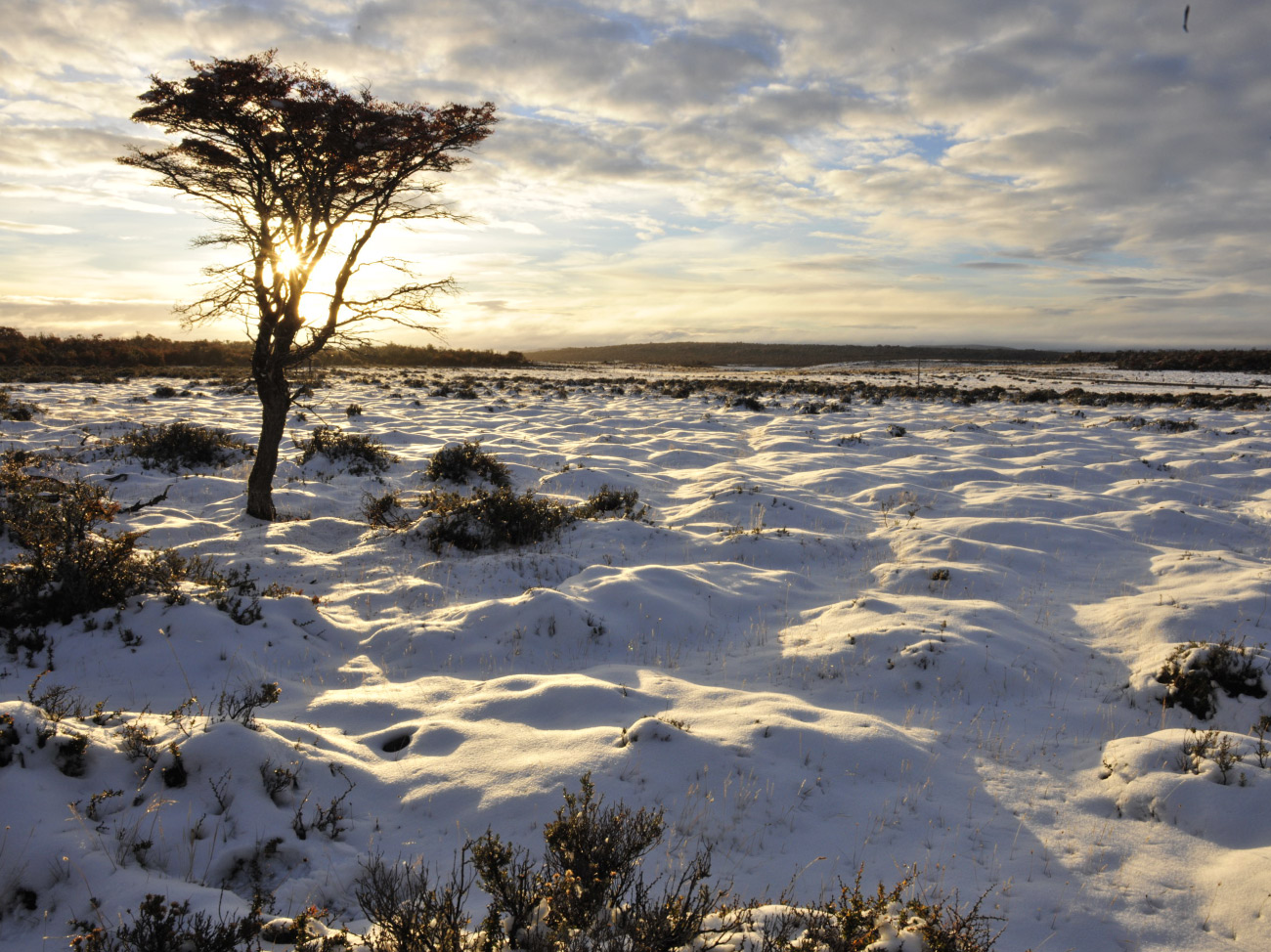The weather in Tierra del Fuego is extremely unstable at any season of the year, changing completely from one day to another or even during the same day. It is not as severe as people think, since mountains and the sea attenuate winds and the temperature. The area along the Beagle Channel, surrounded by mountains higher than 1000 m is protected against very strong winds, which exceptionally reach 100 km per hour. The climate is generally humid around the storm-battered swamps, typical of remote areas of the south and west of the archipelago. The maritime climate is surprisingly mild even in winter, but its unpredictability makes waterproof clothing essential throughout the year Tierra del Fuego, alike the rest of Patagonia, is an area of strong winds from western quadrant. Between August and September they become stronger, generally weakening during the rest of the year. High density rains are compatible with the deciduous plants and evergreen forests, which cover the mountainous southern half. In summer, particularly in January, the average temperature is 9.6 C° at night and it may rise to 18 C° during the day. The lowest temperatures are registered in winter (end of July / beginning of August) with an average of 1 C°. Autumn and spring are considerably unstable as regards the weather. Due to its proximity to the south pole and the variations of the January solstice, a peculiar characteristic of the island is that in the summer sunlight may last seventeen hours and a half hours (January) whereas in winter (July), it may last only seven or eight hours, even when days are clear and bright. In winter, the snow-covered landscape changes its appearance. Days are usually clear and bright.